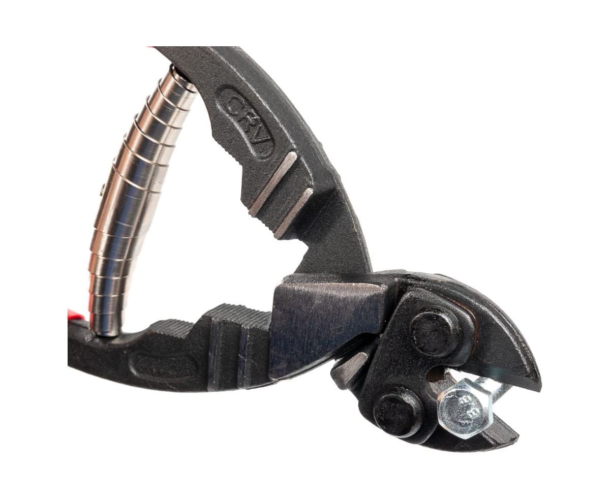 Имеется возвратная пружина для эффективной резки. Благодаря рычажной системе усилия резки достаточно для перекусывания болтов толщиной до 6 мм.