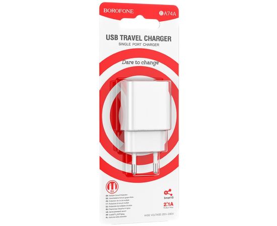 Сетевое зарядное устройство BOROFONE BA74A/ СЗУ/ 1 USB/ Выход: 10.5W/ Белый
