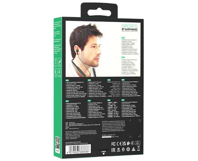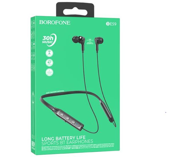 Спортивные беспроводные наушники с микрофоном borofon BE59 - это легкие, стильные наушники. Емкость аккумулятора 200mAh, заряжаются 1.5 часа. Работа в режиме музыки / звонков 30 часов, в режиме ожидания 200 часов. Вес: 28г.