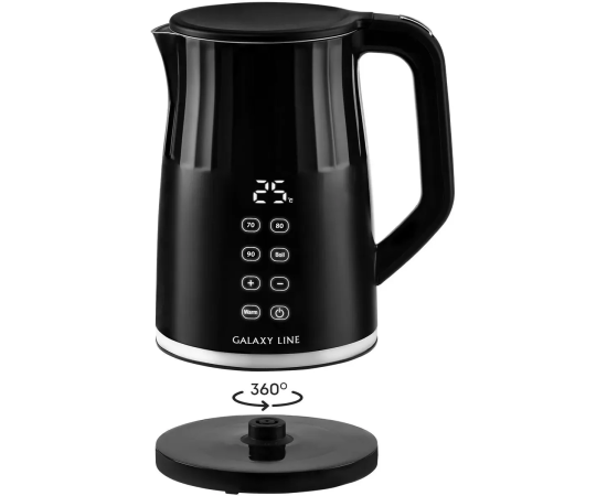 вращение на 360 градусов, двойные стенки, дисплей, индикатор уровня воды, отсек для хранения шнура, сенсорное управление