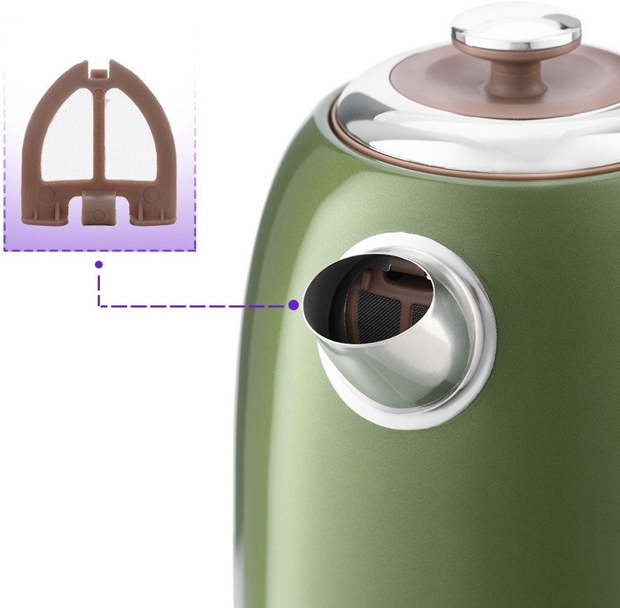объем 1.7 л, мощность 2200 Вт, индикация включения, закрытая спираль, установка на подставку в любом положении, корпус из стали и пластика, вес 1.1 кг