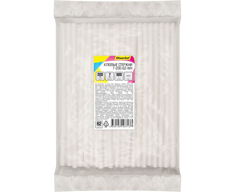 Cтержни клеевые для клеев. пистолета Silwerhof 7-200-62-WH L-200мм D7мм белый 62шт