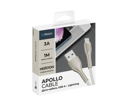 Дата-кабель Apollo USB-А - Lightning, 1м, белый, Deppa