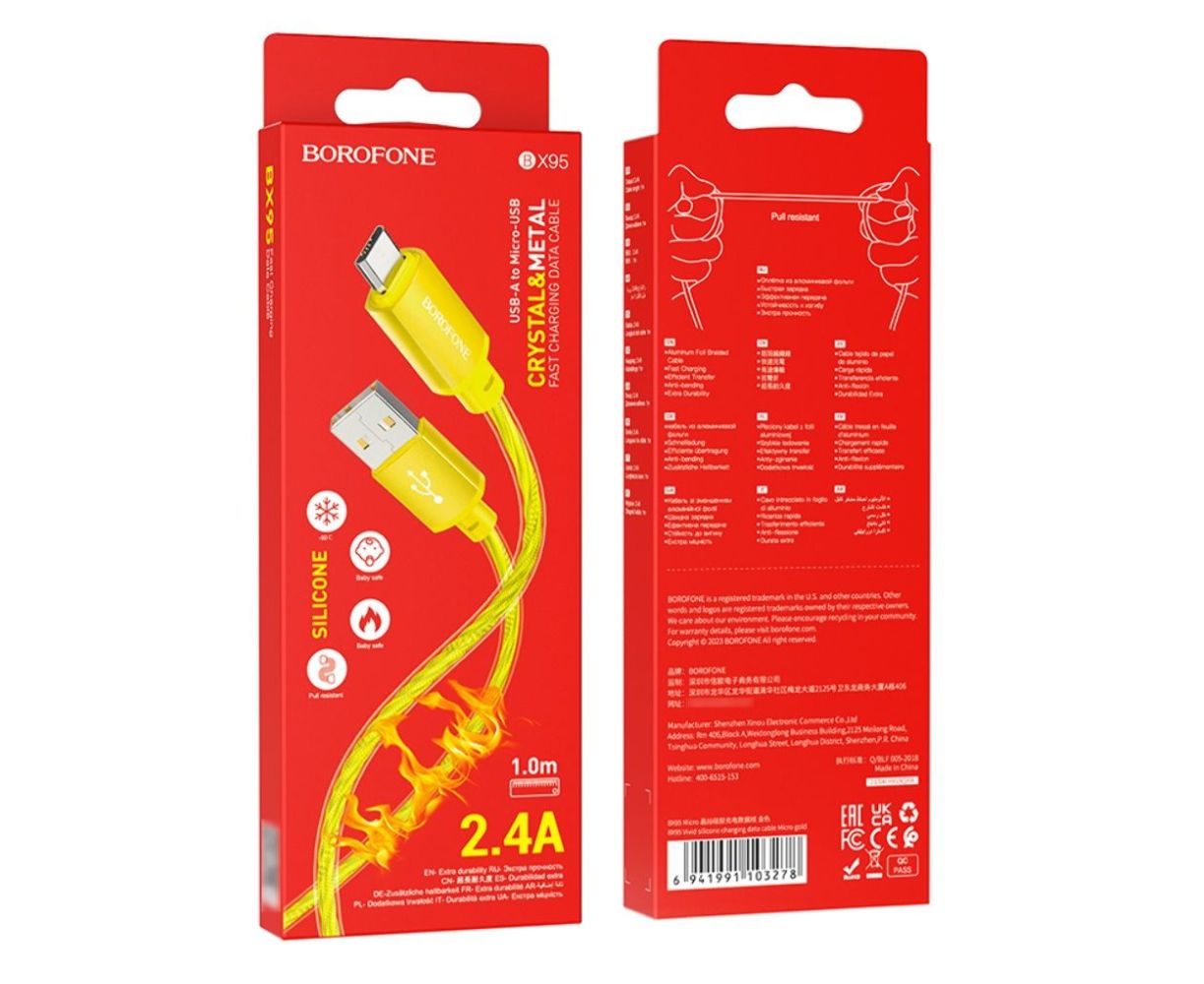 Дата-кабель BOROFONE BX95 Vivid silicone charging data cable Micro (золотой)