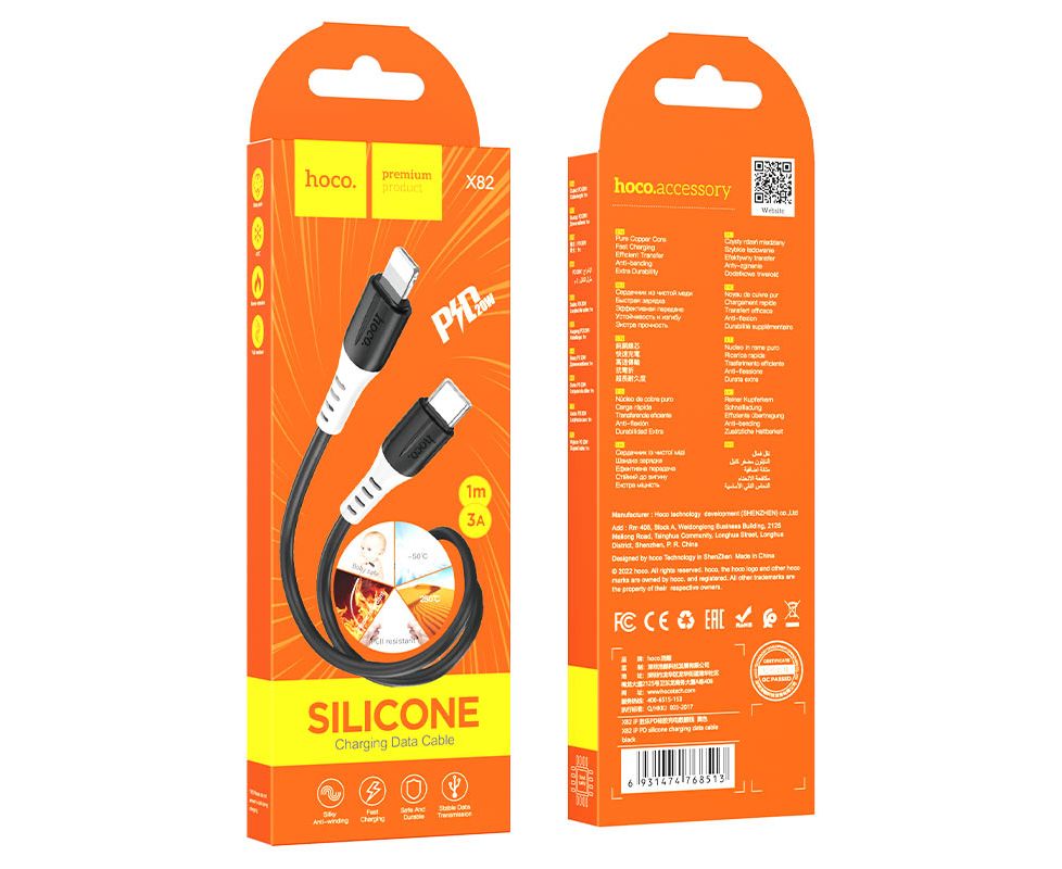 X82, кабель для зарядки и передачи данных Type-C на Lightning PD, 1м, силиконовый, поддержка быстрой зарядки PD 20W