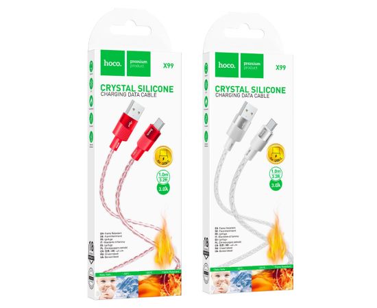 X99 Crystal junction, кабель для передачи данных от USB к Type-C, ток до 3 А, силиконовая оболочка, длина – 1 м