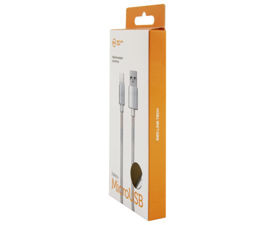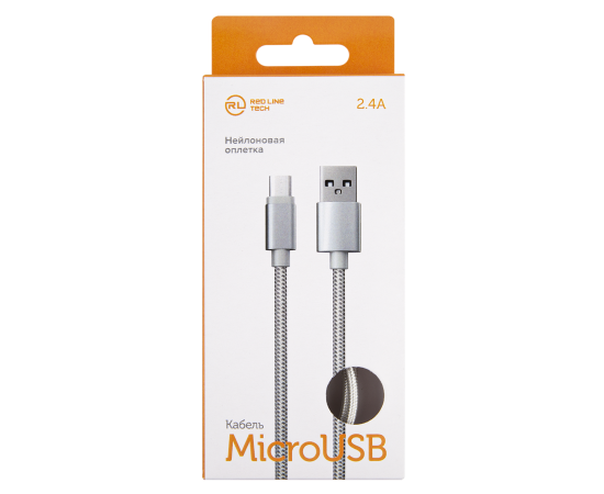Дата-кабель Red Line USB - micro USB нейлоновая оплетка, серебристый