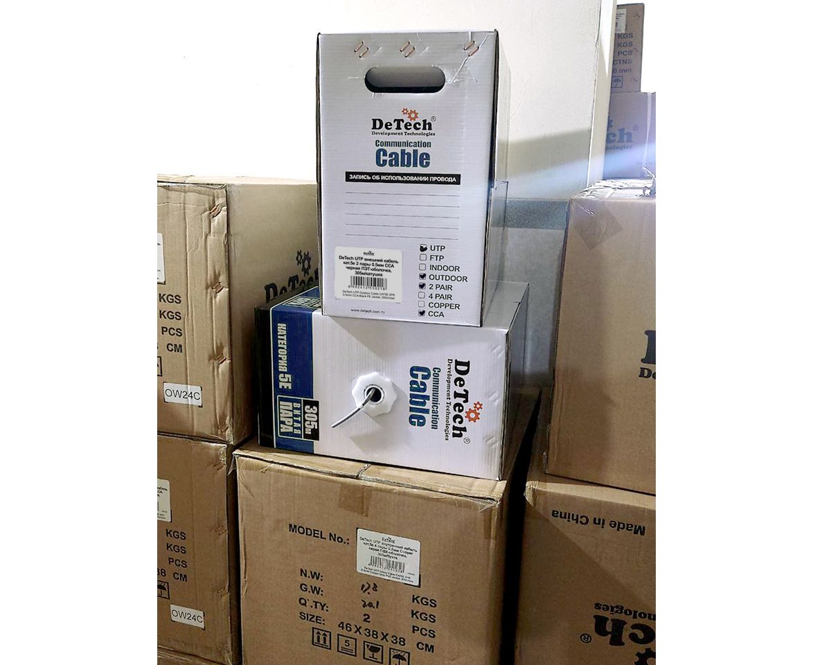 DeTech UTP внешний кабель кат.5е 2 пары 0.5мм CCA черная ПЭТ-оболочка, 305м/бухта