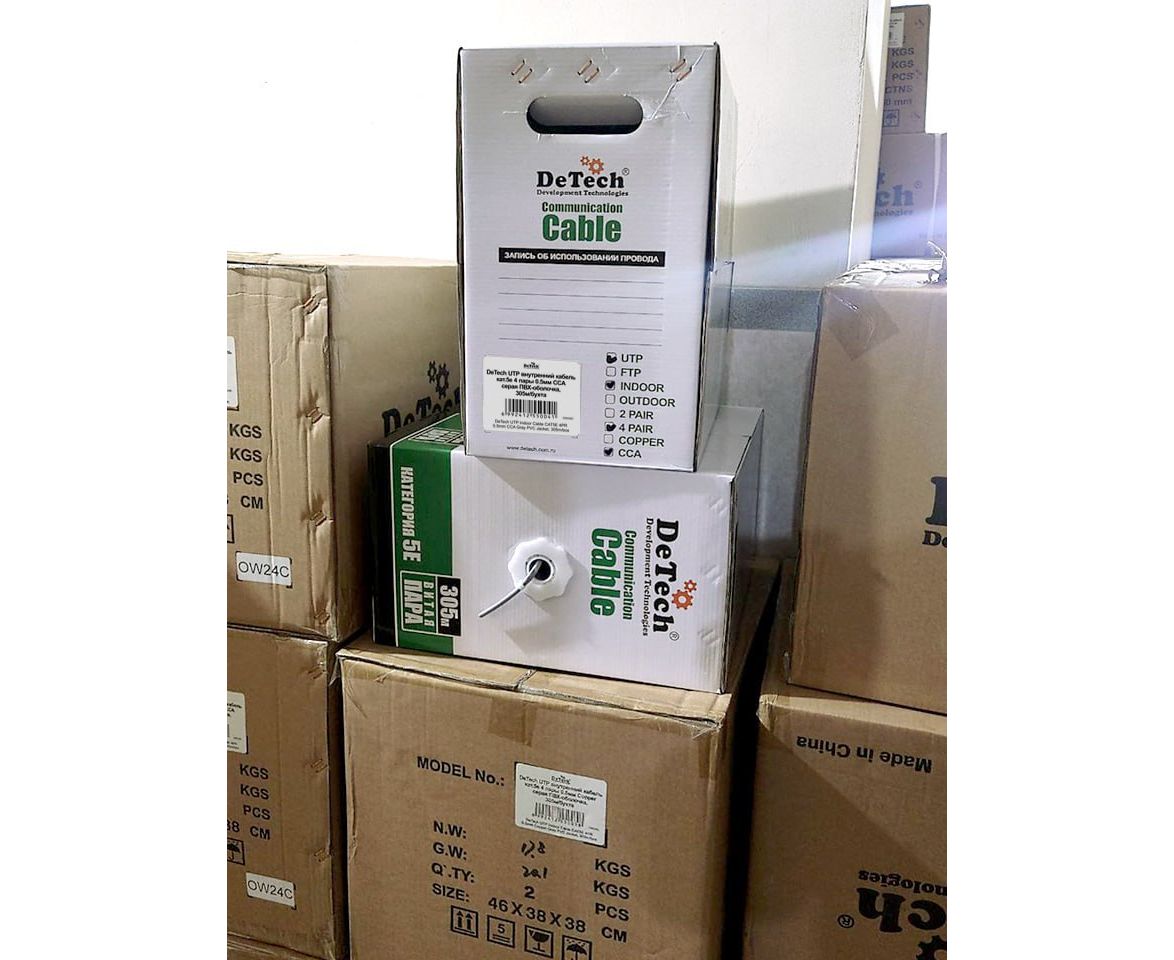 DeTech UTP внутренний кабель кат.5е 4 пары 0.5мм CCA серая ПВХ-оболочка, 305м/бухта