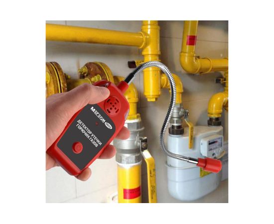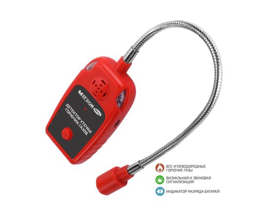 МЕГЕОН 08013 - портативный детектор, который позволяет быстро обнаружить пары горючих газов и жидкостей. Для удобства работы прибор оборудован выносным датчиком на зонде полужёсткой конструкции. Благодаря этому улучшается доступ в труднодоступные места. При обнаружении паров изделие оповестит о наличии звуковым и световым оповещением. Плавная настройка уровня чувствительности даёт возможность компенсировать естественное присутствие инертных и других газов в воздухе, которое может повлиять на правильность срабатывания сигнализации. Эксплуатация не требует специальных навыков и умений. Достаточно нажать кнопку включения, дождаться прогрева чувствительного элемента, настроить сигнализацию в условиях отсутствия примесей исследуемых углеводородов в окружающей атмосфере, а затем проведите поиск возможной утечки. Инструмент станет прекрасным помощником профессионалов и любителей при проведении проверки газового оборудования, вентилей и трубопроводов в промышленных и бытовых строениях.