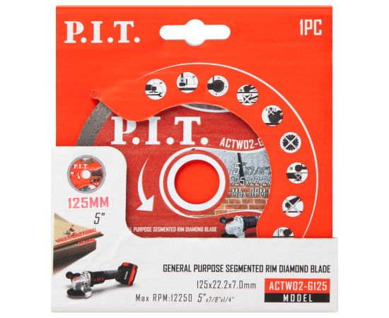 Диск алмазный P.I.T. ACTW02-G125 отрезной (сегментированный) 125x22,2x1,4 мм