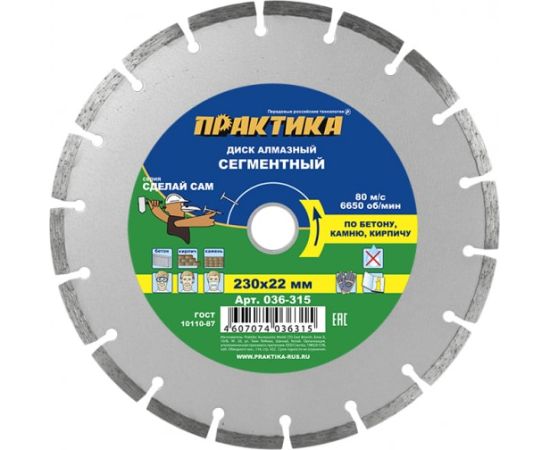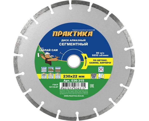 Диск алмазный сегментный Практика Сделай Сам 230 х 22 мм (036-315) 1 шт/в пленке