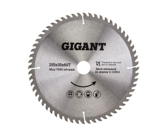 Диск пильный чистый рез по дереву Gigant G-110914 255x30x60Т