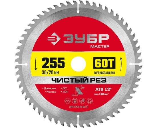 Диск пильный по дер. Зубр 36914-255-30-60_z01 d-255мм d(посад.)-30мм (циркулярные пилы)