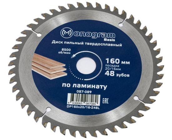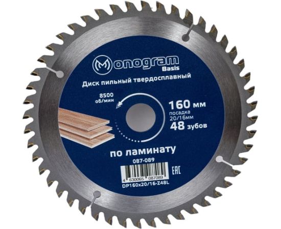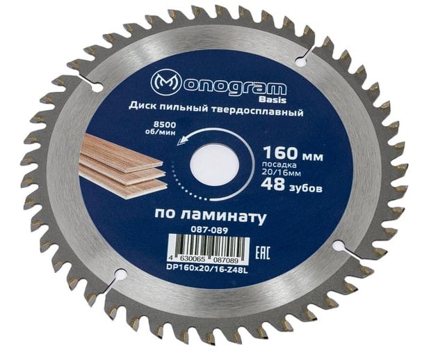 Диск пильный по дереву Monogram 087-089 d-160мм dпосад-20мм циркулярные пилы (упак 1шт)