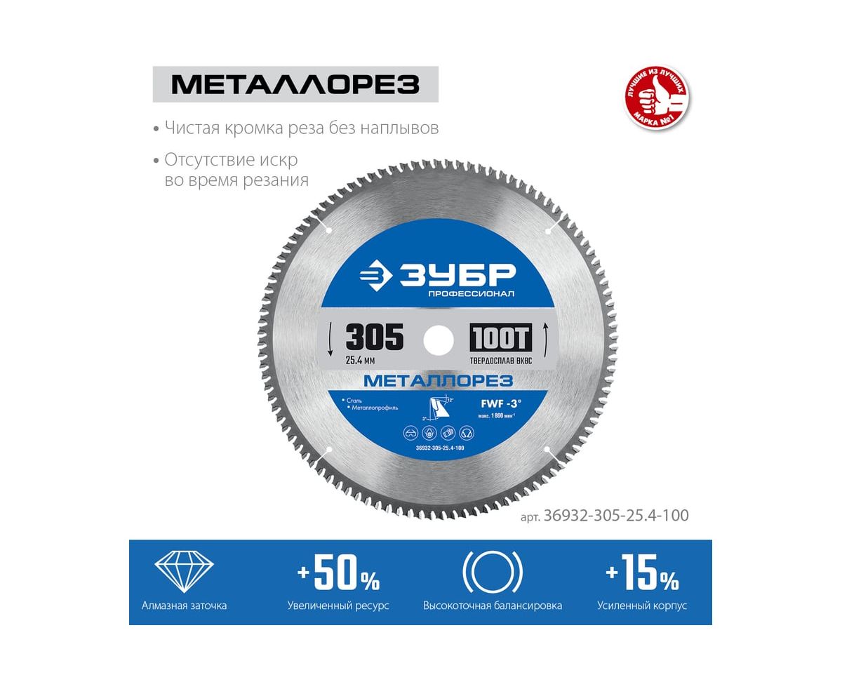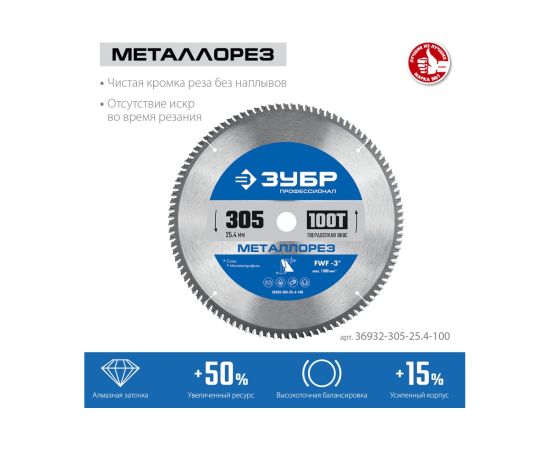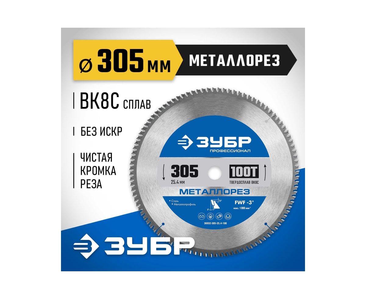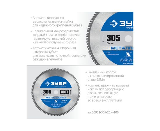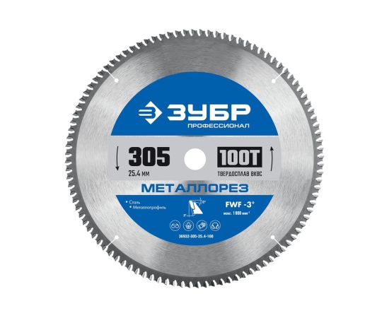 Технические характеристики пильного диска по металлу и металлопрофилю ЗУБР 36932-305-25.4-100