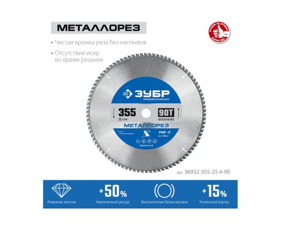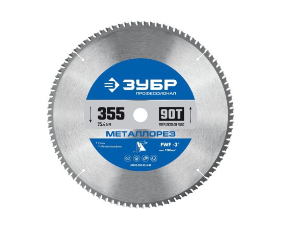 Технические характеристики пильного диска по металлу и металлопрофилю ЗУБР 36932-355-25.4-90