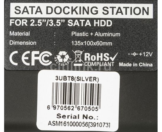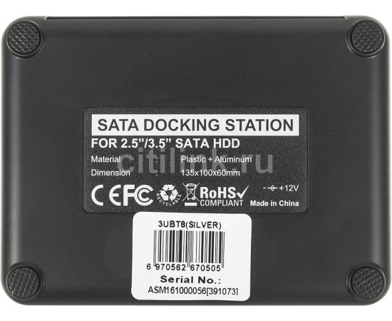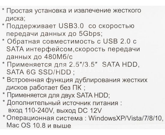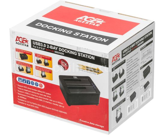 Док-станция для HDD AgeStar 3UBT8 Sata III пластик/алюминий черный 2