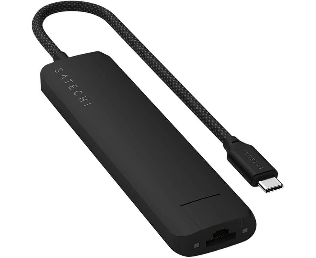 Док-станция Satechi 7-in-1 USB-C Slim Multiport Adapter with Ethernet (ST-P7SK) Type-C, HDMI, 2xType-A, SD, microSD, RJ-45, до 80 Вт Черный