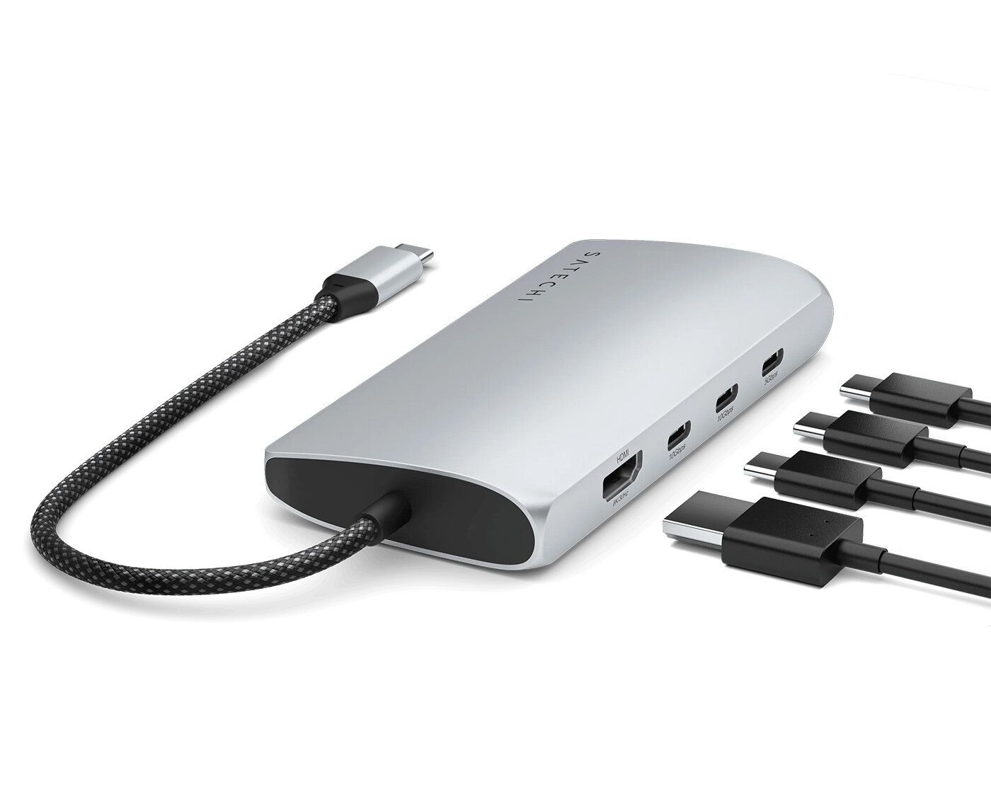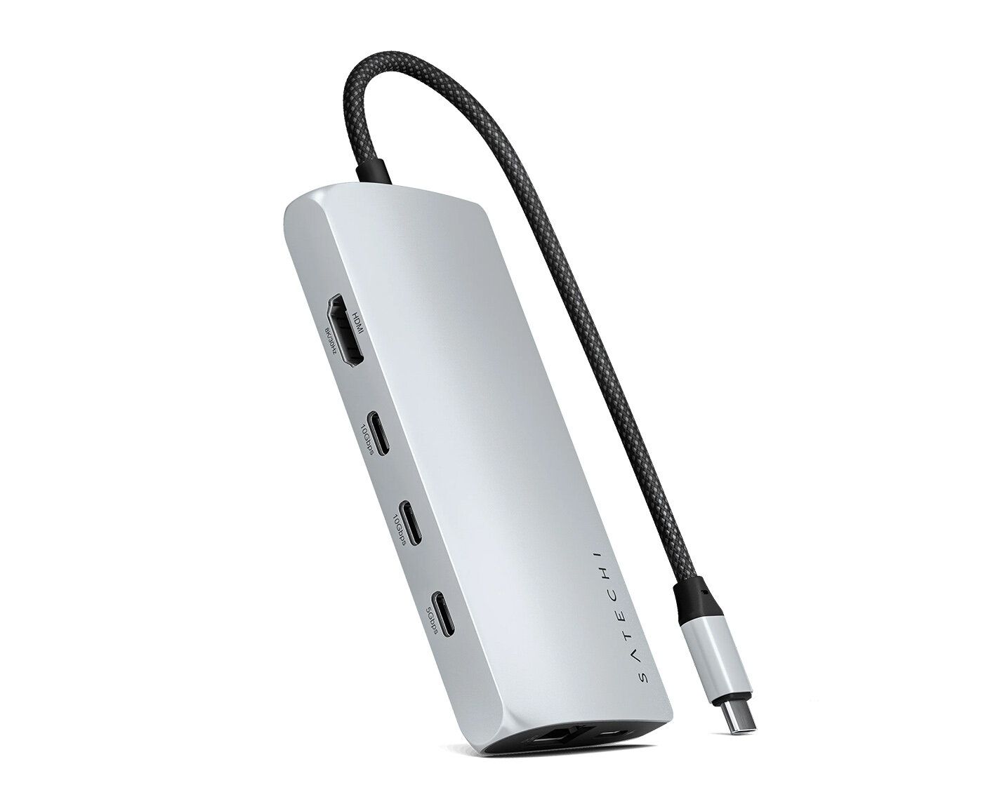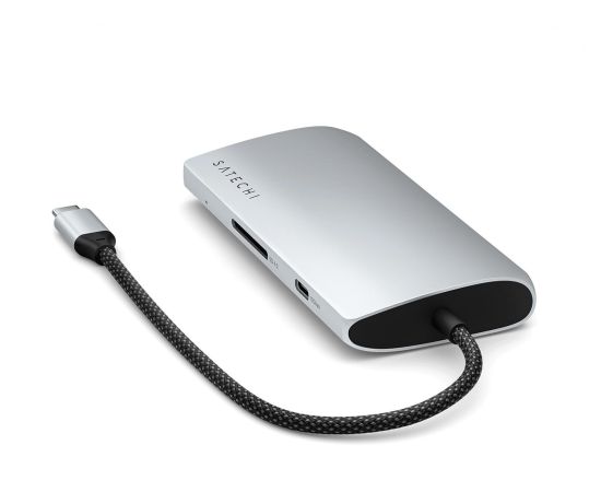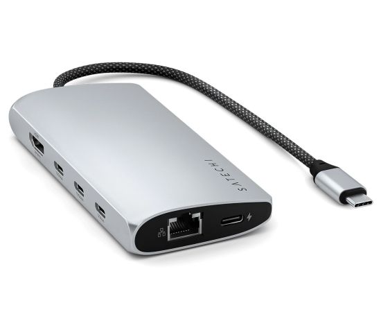 Док-станция Satechi USB-C Multiport Adapter 8K With Ethernet V3 (ST-P8KES) 5xUSB Type-C, HDMI, RJ-45, SD, до 85Вт, Серебристый
