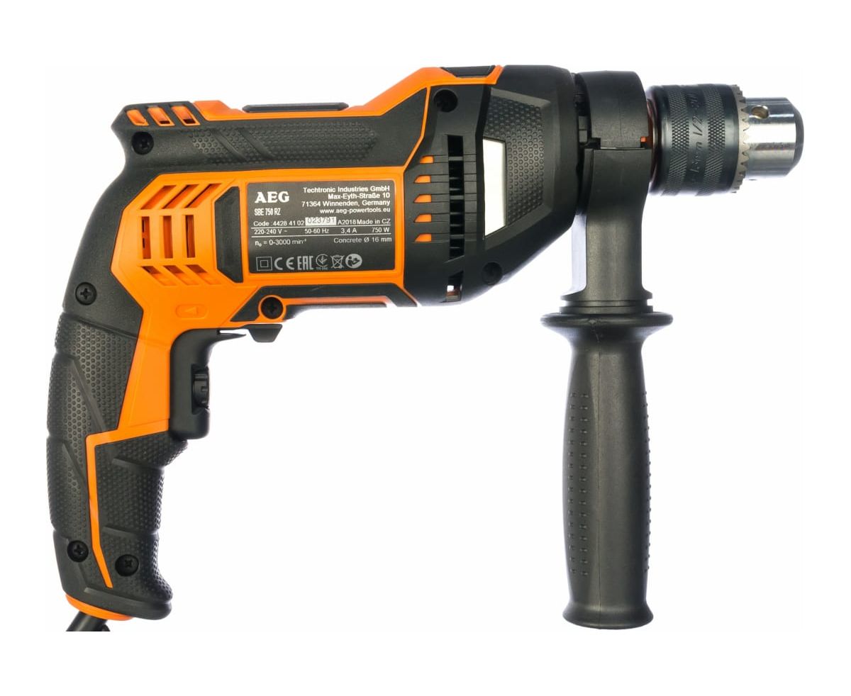 Ударная дрель AEG SBE 750 RZ 4935442840 оснащается долговечным ключевым патроном. Используется для сверления в кирпичных и пенобетонных конструкциях, в дереве и металле, на строительных площадках, а также в процессе ремонта для сверления отверстий диаметром до 30 мм. Обрезиненное покрытие с микротекстурой и дополнительная рукоять позволяют крепко держать дрель в руках, что особенно актуально при работе в режиме долбления.