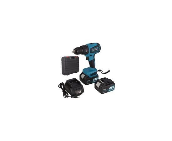 Комплектация Дрель-шуруповерт, Аккумулятор - 2 шт, Зарядное устройство, Клипса; Универсальная бита, Кейс, Инструкции с гарантийным талоном