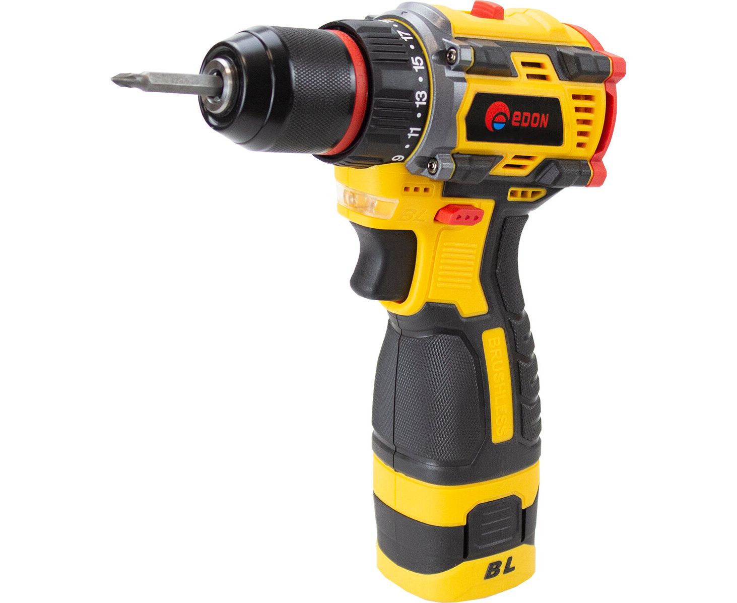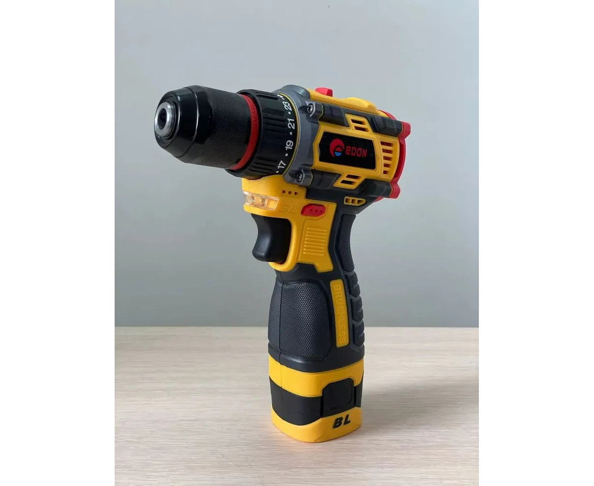 Дрель-шуруповерт аккумуляторная Edon AD-16BL бесщеточная - это мощный и удобный в использовании аккумуляторный инструмент, имеющий бесщеточный двигатель, который обеспечивает эффективность работы и длительный срок службы. Предназначена для сверления отверстий и закручивания или откручивания различного крепежа. Устройство оснащено литий-ионным аккумулятором с емкостью 2,0 А.ч., который обеспечивает длительное время работы без необходимости подзарядки. AD-16BL имеет две скорости вращения и реверсивную функцию, что позволяет быстро и легко менять режимы работы в зависимости от задач.