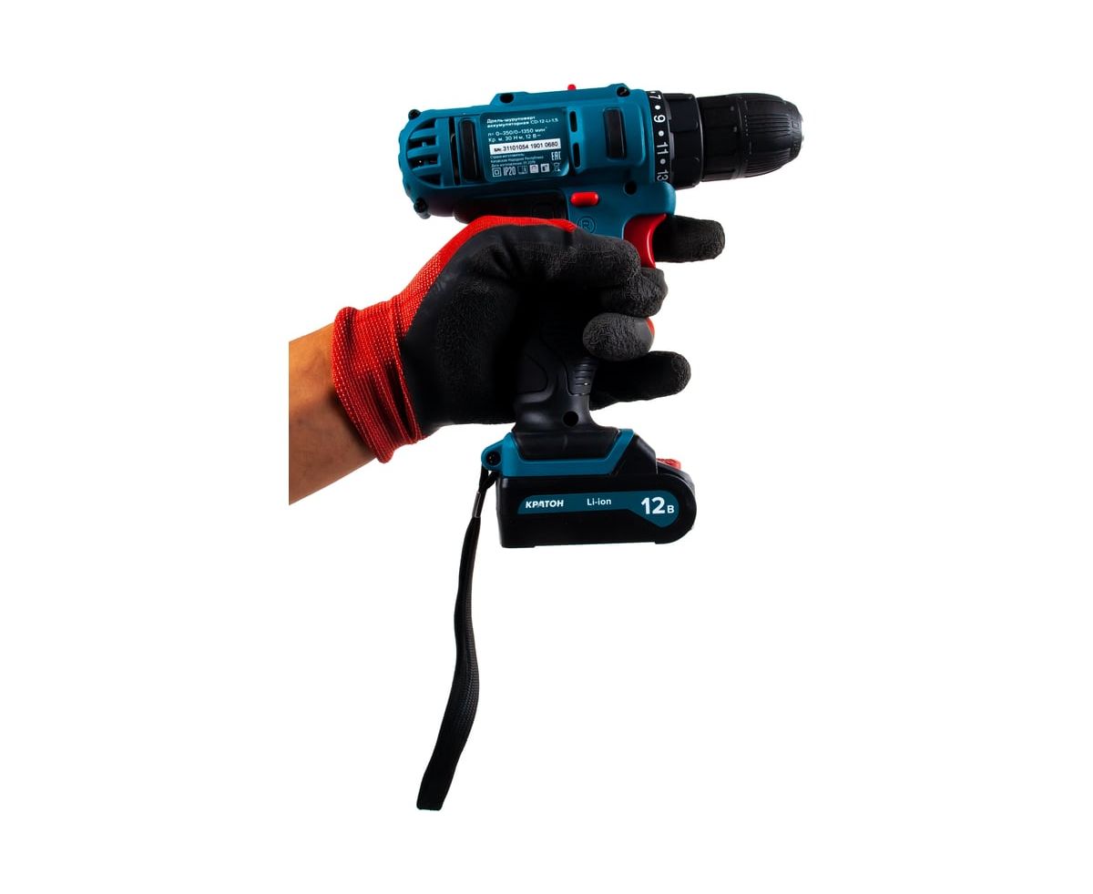 Аккумуляторная дрель-шуруповерт Кратон CD-12-Li-1,5 3 11 01 054 используется для сверления отверстий и монтажа резьбовых соединений.