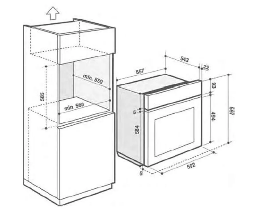 Размеры ниши для встраивания ВxШxГ (мм)600x560x570