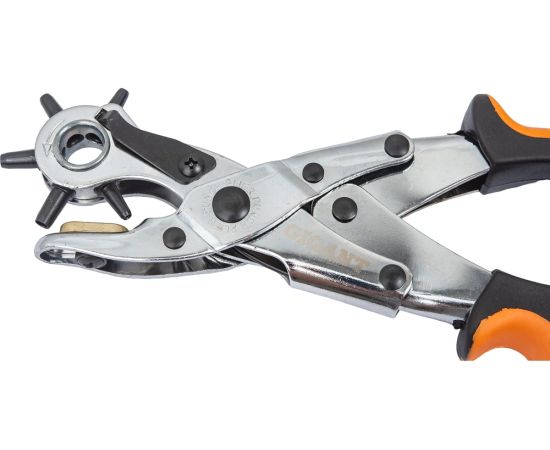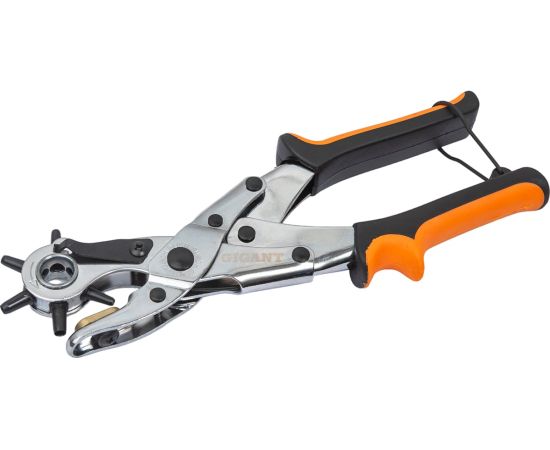 Револьверный дырокол для кожи Gigant 2-4,5мм GHT-24 также подойдет для резины, пластика и картона. Простой револьверный механизм позволяет быстро настроить нужный диаметр для пробивания отверстия. Инструмент выполнен из прочной стали.