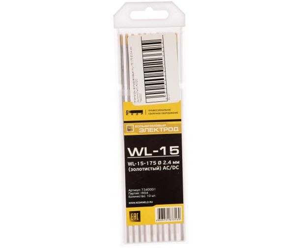 Электроды вольdрамовые Кедр 7340001 WL-15-175 диам. 2,4 мм золотистый 10 шт. AC/DC