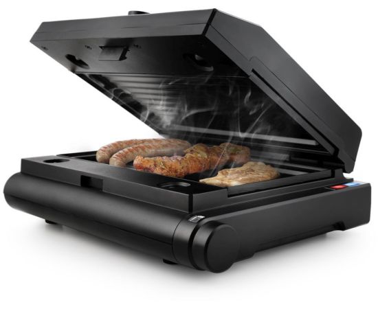 Описание: Контактный электрический мини-гриль позволяет приготовлять стейки, овощи, рыбу, сосиски, котлеты для гамбургеров и многое другое. Сменные панели расширяют возможности гриля. Система крепления на защелках позволяет легко заменять панели.