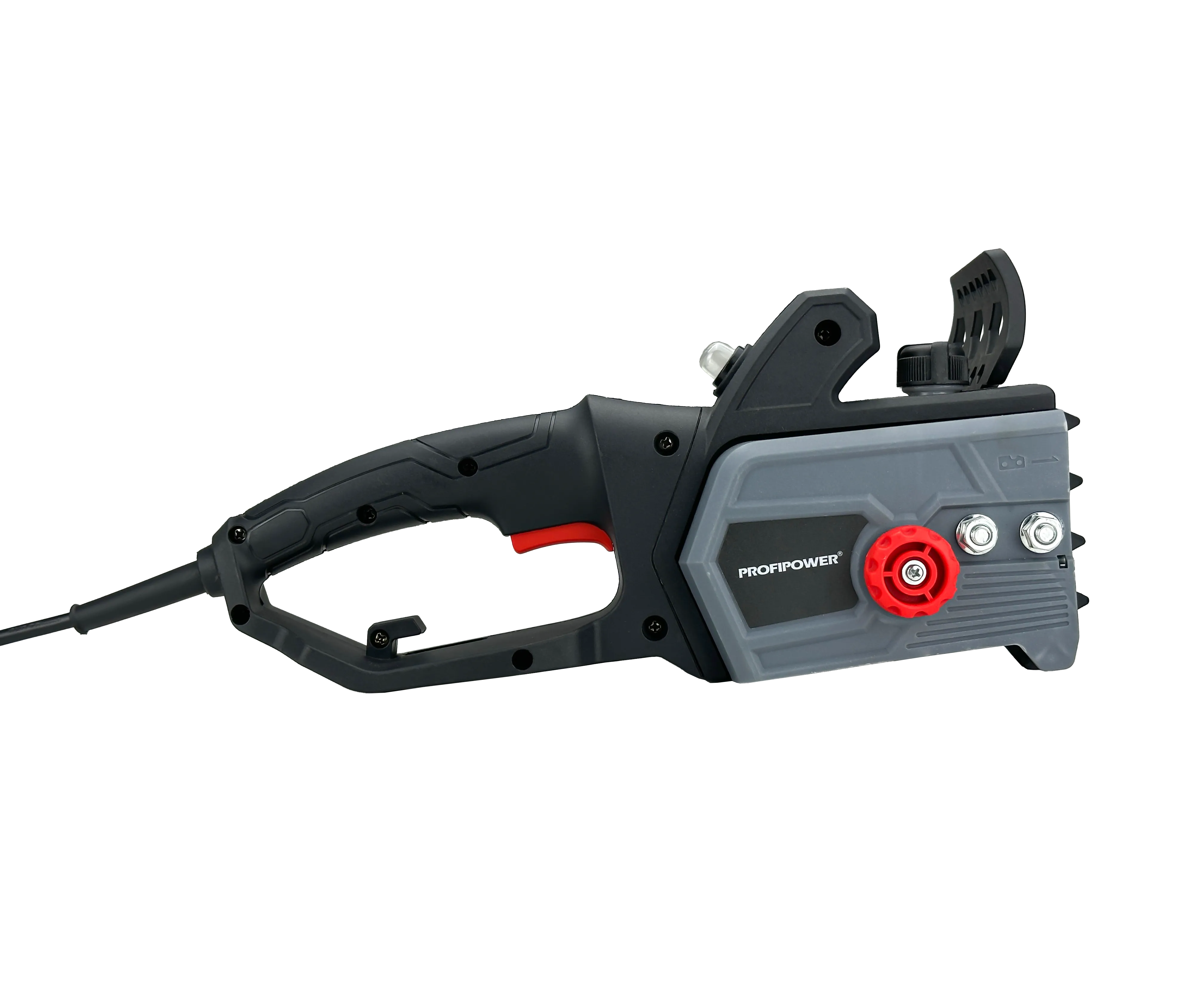 Шестерни из металла. Пила цепная сетевая T0030 PEC-2200 предназначена для распиливания древесины, заготовки дров и выполнения других работ с материалами из дерева. Инструмент разрешается использовать только для резки древесины. Использование цепной пилы не по назначению может привести к опасным ситуациям.Инструмент предназначен для работы в условиях умеренного климата с диапазоном рабочих температур от -10 до + 35 °С и относительной влажности не более 80%, с отсутствием прямого воздействия атмосферных осадков и чрезмерной запыленности воздуха. Вид климатического исполнения изделия- УХЛ 3.1 по ГОСТ 15150- 69 (П 3.2). Корпус изделия обеспечивает защиту инструмента от твердых частиц размером более 12 мм, но не защищает от воды