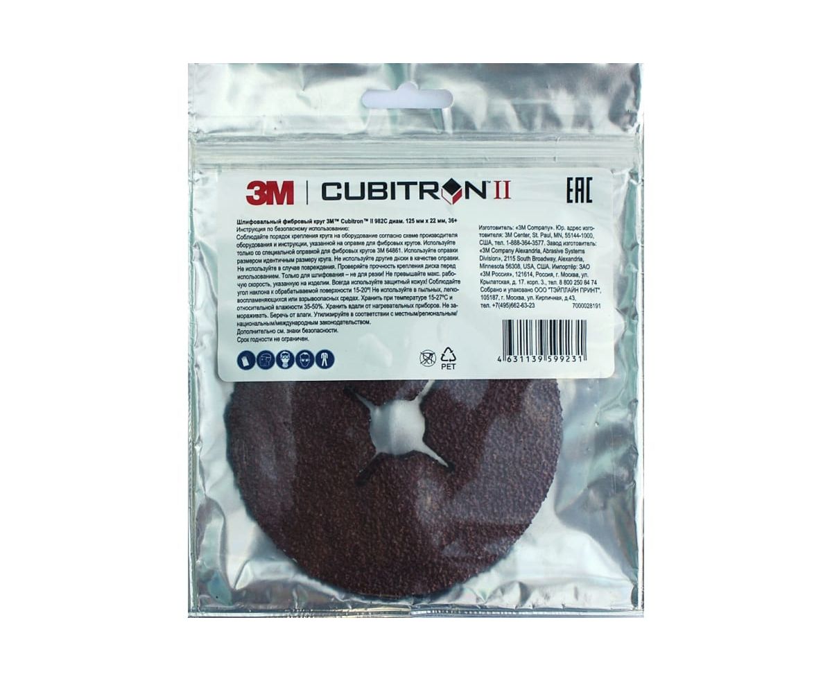 Фибровый шлифовальный круг 3М 982С (7000028191) 125 мм х 22 мм, 36+, Cubitron – II