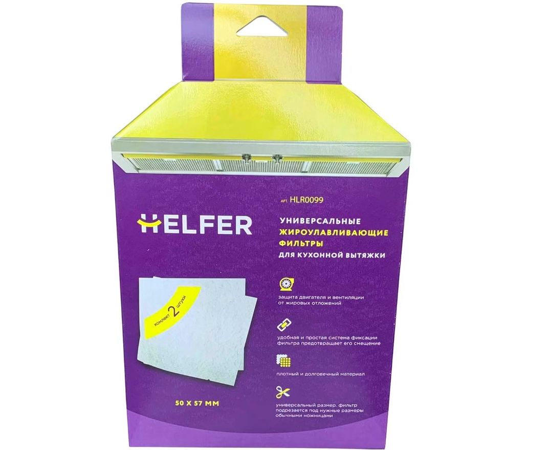 Универсальный жироулавливающий фильтр Helfer HLR0099 подойдёт для большинства кухонных вытяжек шириной 50 и 60 см. Он предназначен для защиты двигателя и вентиляционного канала от образования жировых отложений, кроме того, его можно легко установить самостоятельно.