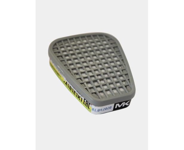 Противогазовый фильтр МК (12242) класс защиты А1В1Е1К1, модель 088 МК088 предназначен для очистки вдыхаемого воздуха от органических газов и паров с температурой кипения выше 65 град., неорганических газов и паров (за исключением оксида углерода), диоксида серы и других кислых газов, аммиака и его органических производных в составе фильтрующего противогаза MK 85 (полнолицевая маска) или фильтрующего респиратора МК 75 (силиконовая полумаска). Защищает от красок, растворителей, эмалей, герметика, клея, лаков, спирта, бензина, керосина, смол, в том числе эпоксидных, галоидорганических соединений, нитросоединений бензола и его гомологов, анилина, кетонов, тетраэтилсвинца, гудрона, хлора, фтора, брома, гидрида серы, арсинов, фосфористого, хлористого, бромистого, фтористого водорода, диоксида серы, паров серной, уксусной, муравьиной, азотной, фосфорной кислоты, аммиака метиламина, метана и других запахов класса и концентрации АBEK1.