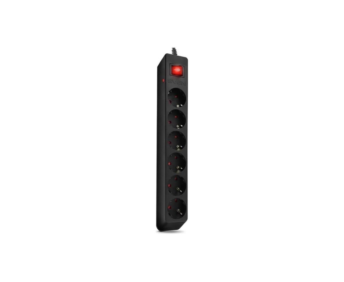 Фильтр SVEN Optima 3,0 м (6 розеток с защитными шторками, черный, цветная коробка)