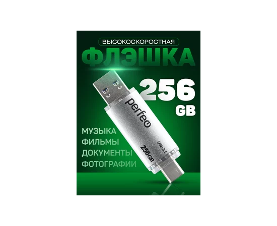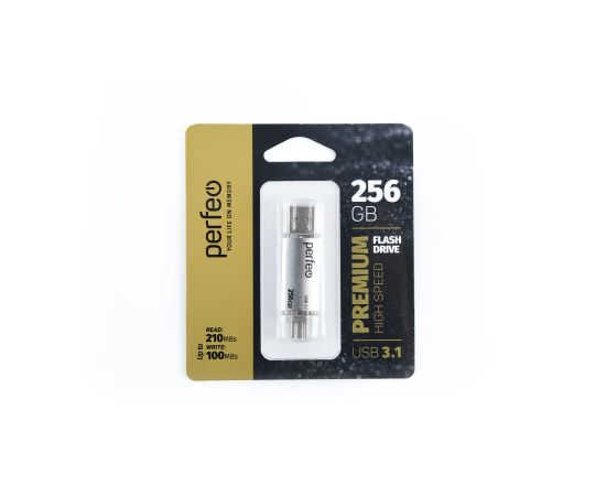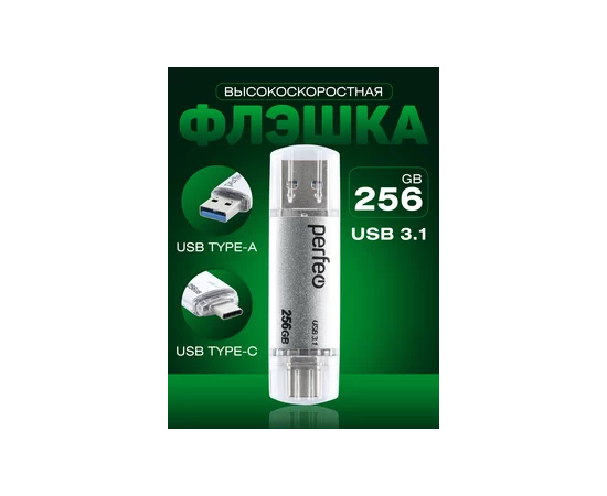 Флешка Perfeo 3.1 256GB C16 / Серебристая Type A+C, (Арт. PF-C16S0256TC)