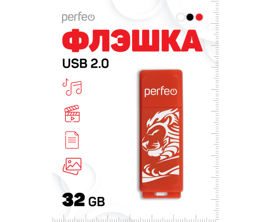 Флешка Perfeo USB 32GB C04 красная Lion