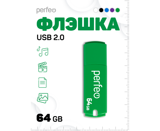 Флешка Perfeo USB 64GB C05 / Зелёная, (Арт. PF-C05G064)