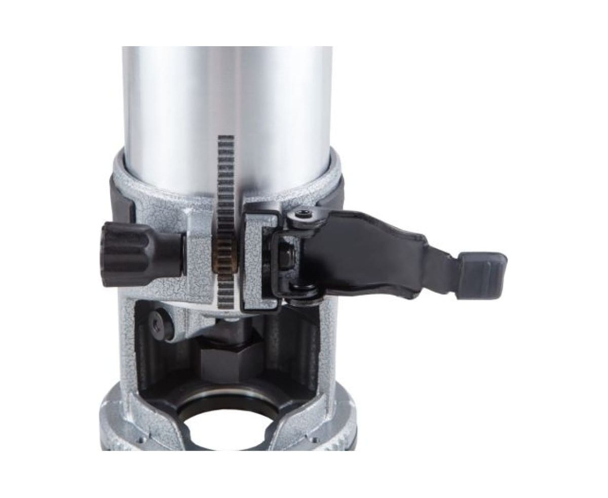 Компактное эргономичное исполнение позволяет удобно держать инструмент в руках. Имеет две цанги на 6 и 8 мм. Присутствует плавная регулировка глубины погружения захода, необходимая для качественной и аккуратной работы.