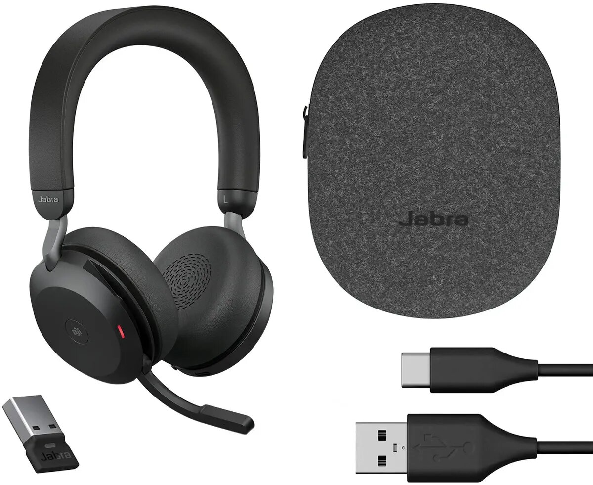 Гарнитура Jabra Evolve2 75, Link380a MS Stereo Black, для компьютера/мобильных устройств, накладные, Bluetooth/радио, черный