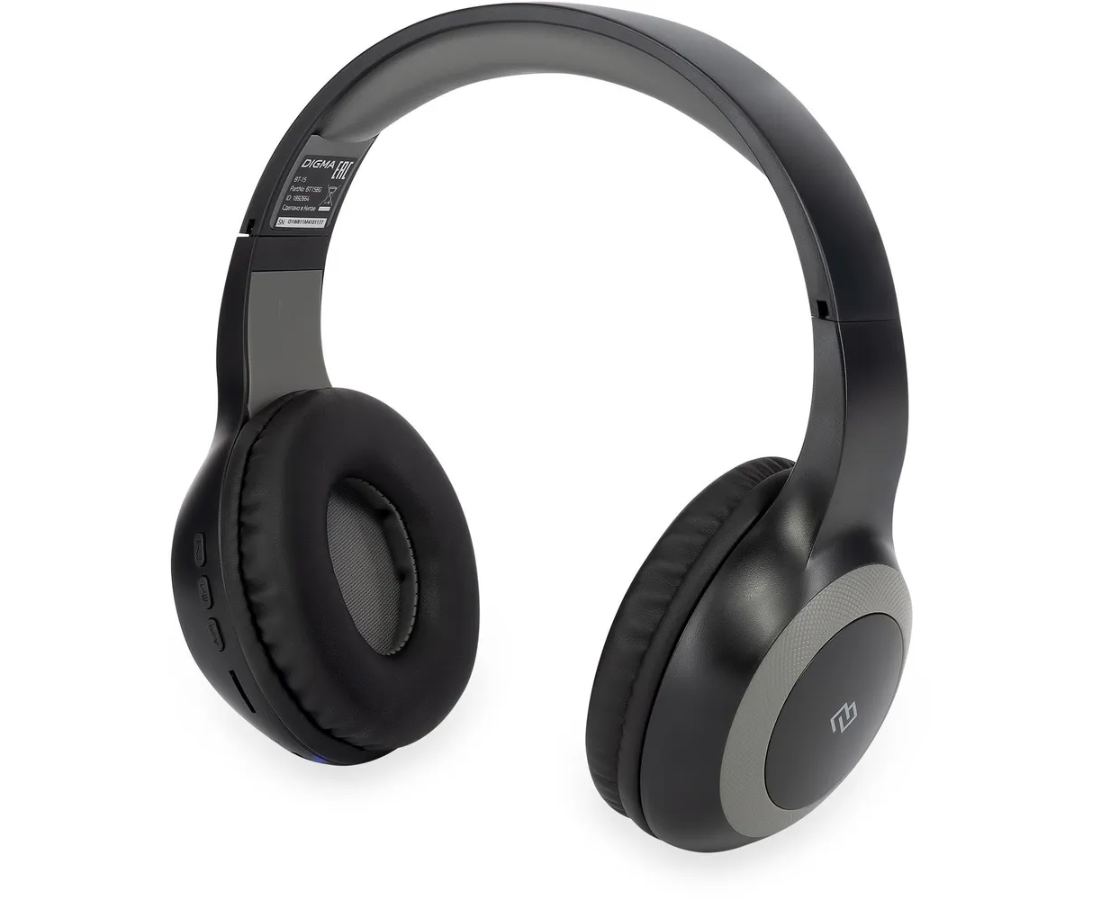 Гарнитура накладные Digma BT-15 (BT-15BG) черный/серый беспроводные