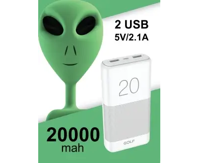 Распродажа! Повербанк GOLF G81/ 20000 mah + Кабель Micro usb /In Micro usb /Out USB 1 А, 2.1A/ Белый