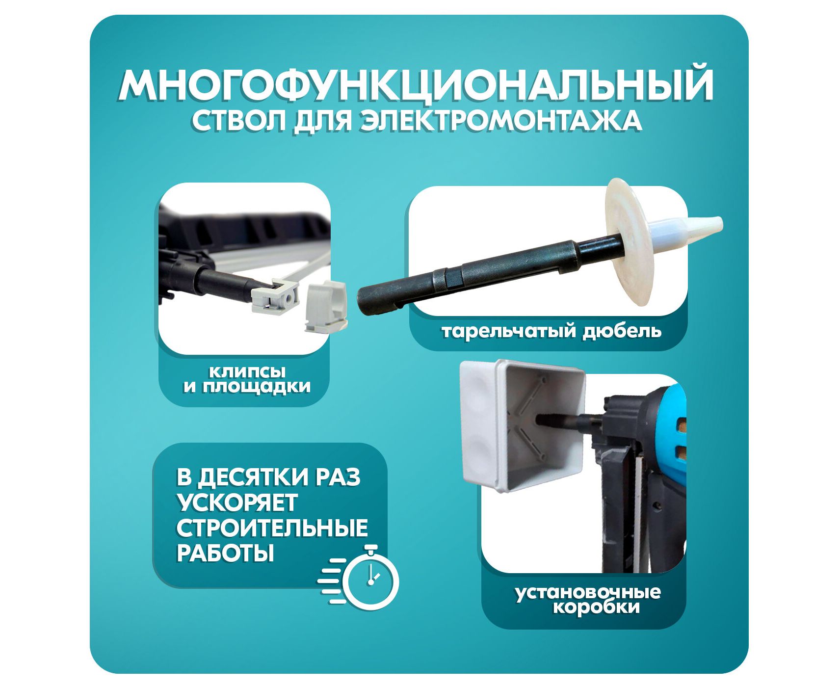 Электромонтаж - монтаж пластиковых клипс, кабельканалов и распаячных коробок. Общестроительный монтаж к бетонной поверхности, к металлопрокатным изделиям и к кирпичной кладке. Монтаж направляющих для гипсокартона и натяжных потолков, штукатурной сетки, гидроизоляционных мембран, монтаж профлиста к металлическим направляющим, пристрелка фанеры и деревянных реек к бетону и кирпичу.