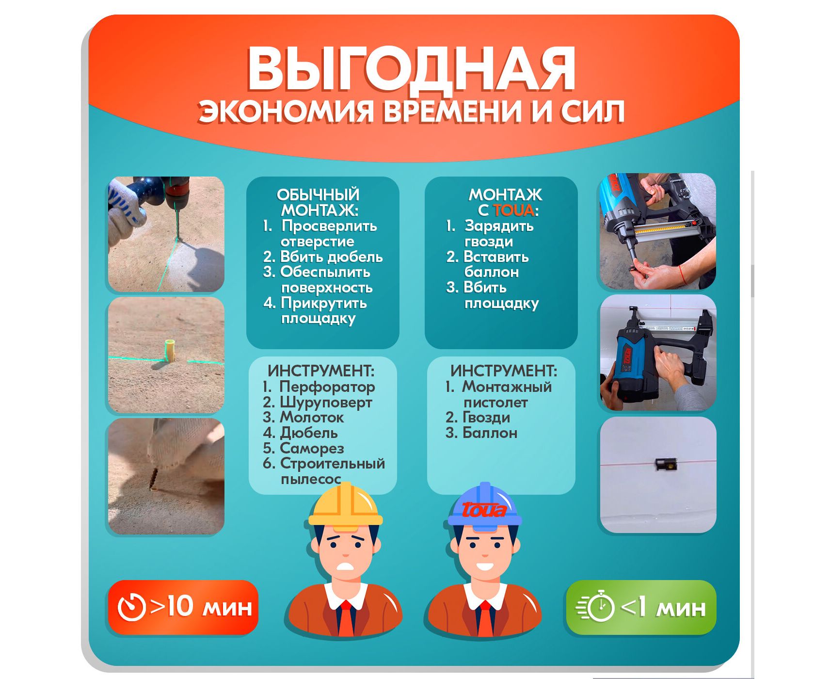-Нет прижимной скобы -компактный ствол является защитным прижимным механизмом, что делает этот инструмент удобным для монтажа креплений инженерных систем и электромонтажа