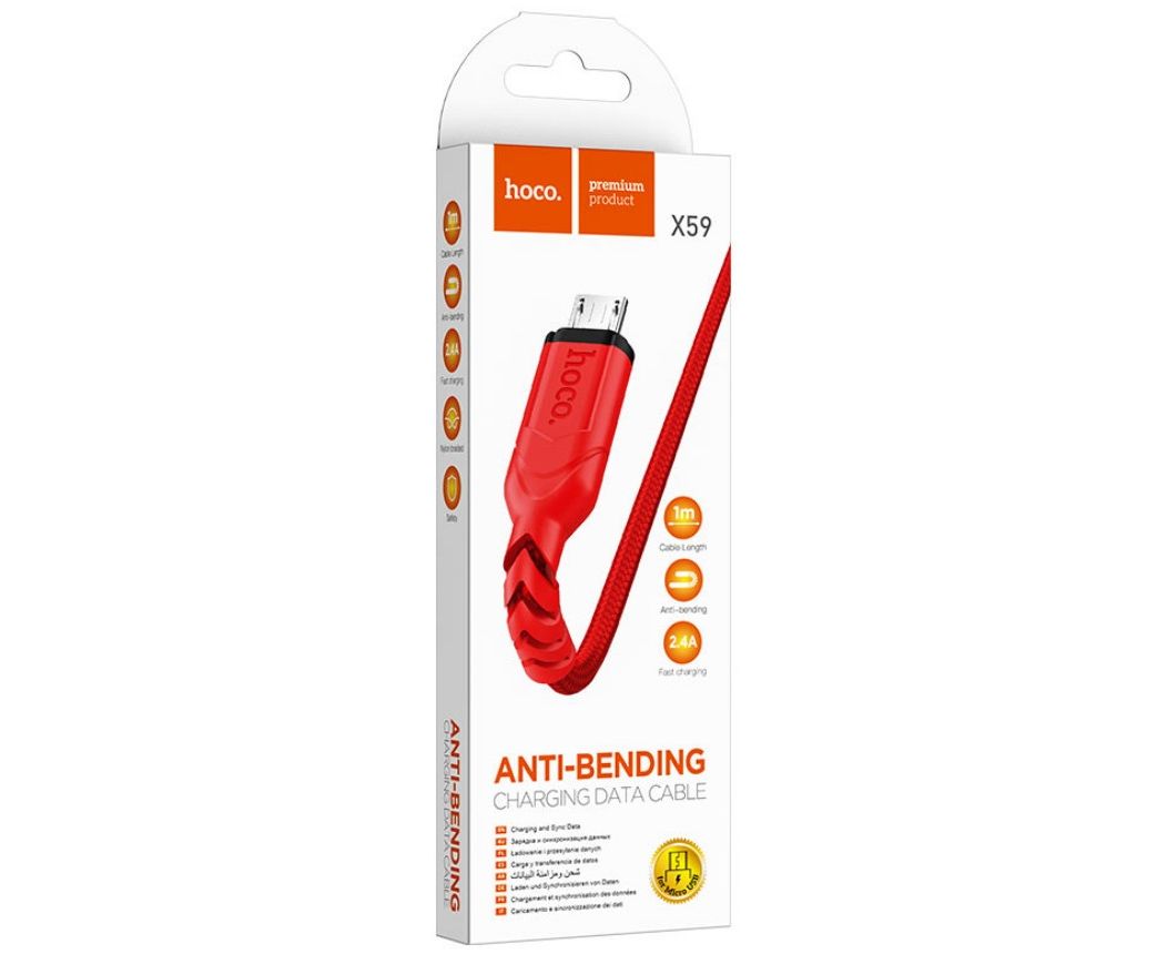 Кабель HOCO X59/ USB Micro/ 1m/ 2.4A/ Нейлон/ Красный, (Арт. HC-44906)
