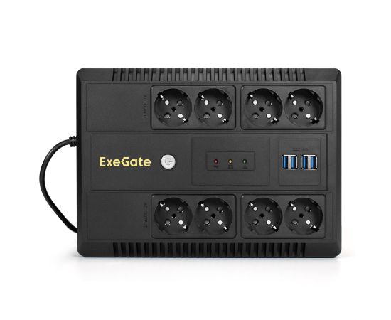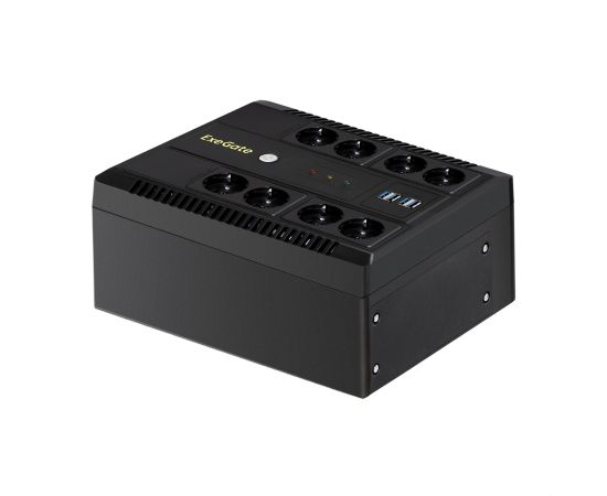 ИБП ExeGate Neo NNB-650.LED.AVR.8SH.CH (EX295011RUS) 650VA/390W, LED, AVR, 8*Schuko, 4*USB-порта для зарядки, Black