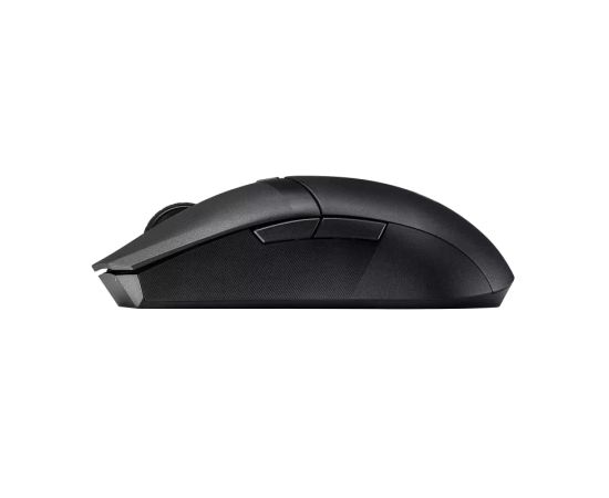 Легкая игровая мышь с симметричным корпусом: два беспроводных интерфейса, чувствительность до 12000 точек/дюйм, шесть программируемых кнопок, верхняя панель из полимера ПБТ с антибактериальным покрытием, тефлоновые ножки и приложение Armoury Crate.