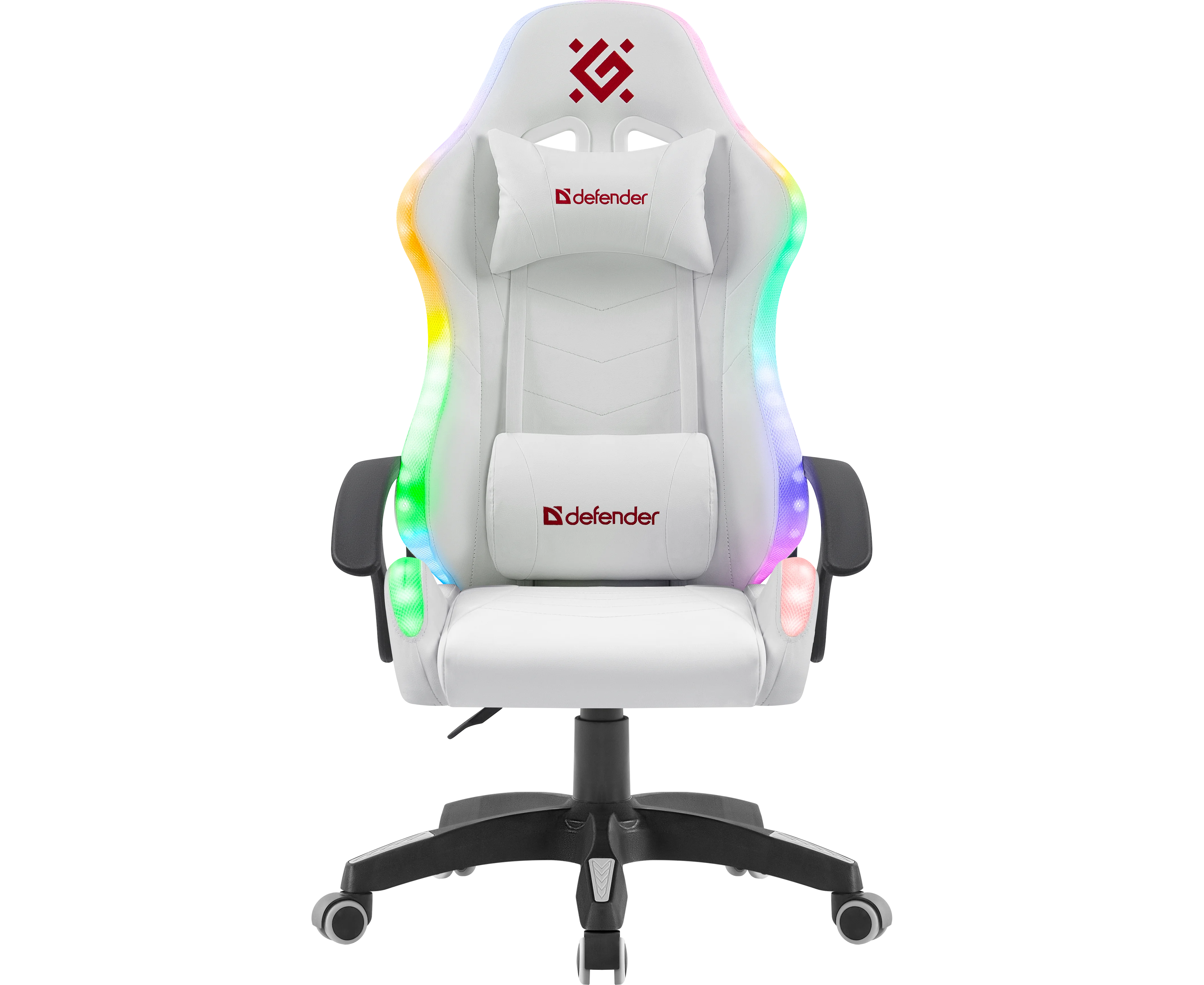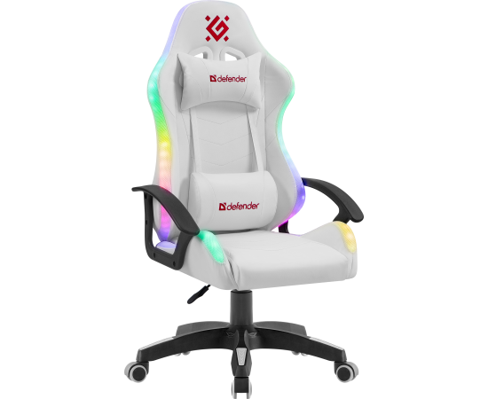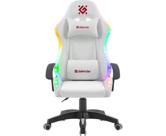Игровое кресло DEFENDER Factor X RGB, белый, класс 2, полиуретан 64046 с RGB подсветкой. Основание кресла выполнено из прочного пластика, а обивка из мягкой экокожи. В комплект входят поясничная и шейная подушки.